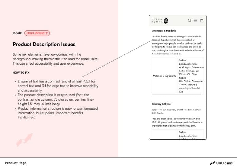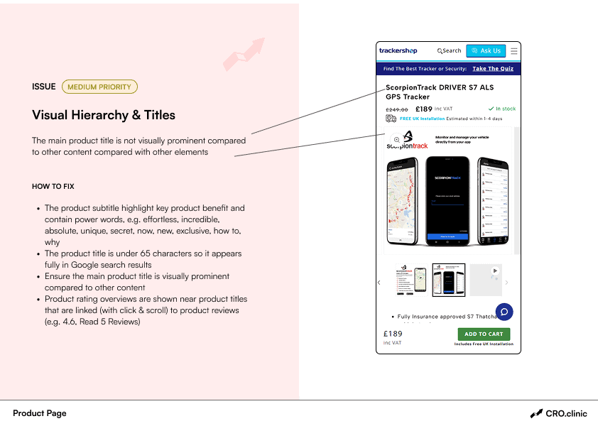 Clear prioritization (low, medium, high) so you focus on fixes with the biggest ROI first.